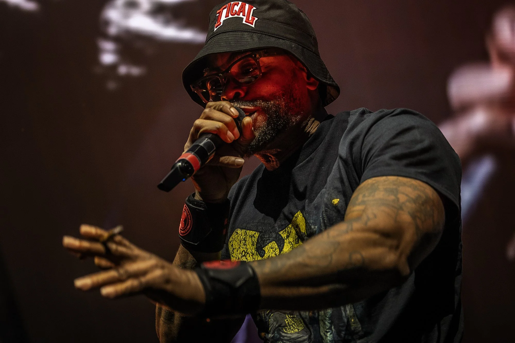 The night began with “Sunlight”—a warm and deliberate opening. “Bring da Ruckus” and “Clan in da Front” arrived with full force. Every word carried structure. “Da Mystery of Chessboxin’” operated like a map of thought. “Ain’t Nuthing ta F’ Wit” moved with grounded authority. “Method Man” confirmed charisma as craft. “Protect Ya Neck” and “Shame on a Nigga” brought the first act to its close—each line locking the arena into Wu-Tang time.
